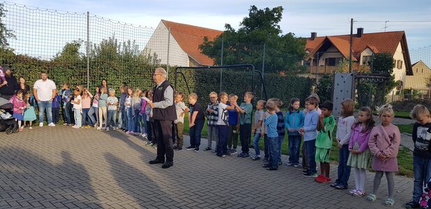 Ein sicherer Start ins Schulleben: unsere Erstklässler wurden am ersten Schultag neben Lehrkräften und Schülern auch von Vertretern der Verkehrswacht herzlich empfangen und über den sicheren Schulweg aufgeklärt.