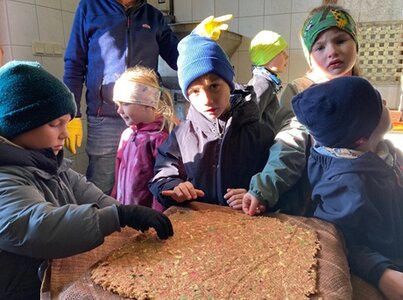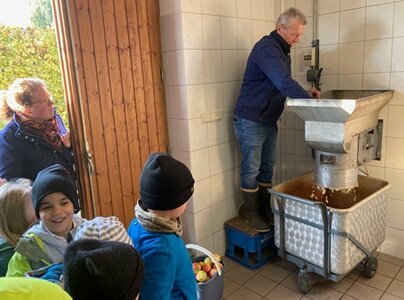 Am Mittwoch, 1.10.25 ging die Klasse 1b zum Apfelsaftpressen mit Herrn Nestler. Alle waren begeistert vom Apfelsaft und von der Apfelpizza. Frau Weiß und Frau Mayr haben uns bei der Aktion unterstützt.